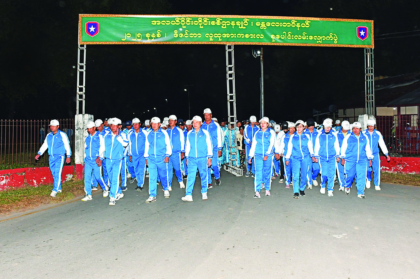 အလားတူ ကာကွယ်ရေးဦးစီးချုပ်ရုံး(ကြည်း) ရုံး/ဌာနများ၏ ဒီဇင်ဘာအားကစားလ စုပေါင်းလမ်းလျှောက်ပွဲကို ယနေ့နံနက်ပိုင်းတွင်ကျင်းပပြုလုပ်ရာ ကာကွယ်ရေးဦးစီးချုပ်ရုံး (ကြည်း)၊ စခန်းမှူးရုံးစခန်းမှူးနှင့် ရုံး/ဌာနများမှ အရာရှိ၊ စစ်သည်၊ မိသားစုများပါဝင်ဆင်နွှဲ၍ သတ်မှတ်လမ်းကြောင်းများအတိုင်း စုပေါင်းလမ်းလျှောက်ကြပြီး သတ်မှတ်နေရာ၌ ကိုယ်လက်ကြံ့ခိုင်ရေးများ စုပေါင်းဆောင်ရွက်ခဲ့ကြကြောင်း သတင်းရရှိသည်။