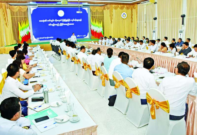ထို့နောက် ပြည်ထောင်စုဝန်ကြီးသည် ဒေသခံပြည်သူများအနေဖြင့် အထွေထွေရွေးကောက်ပွဲတွင် နိုင်ငံသားစိစစ်ရေးကတ်ပြား ပျက်စီး/ပျောက်ဆုံးမှုကြောင့် မဲပေးပိုင်ခွင့်မဆုံးရှုံးစေရေးနှင့် နိုင်ငံသားကတ်ပြားကိုင်ဆောင်မဲပေးနိုင်ရေးအတွက် ဝန်ထမ်းများက ဒေသခံပြည်သူများအား ပန်းခင်းစီမံချက်အဆင့် (၃) ဖြင့် အိမ် ထောင်စုလူဦးရေစာရင်းနှင့် နိုင်ငံသားစိစစ်ရေးကတ်ပြား ထုတ်ပေးနိုင်ရန် လုပ်ထုံးလုပ်နည်းနှင့်အညီ စိစစ်၍ One Stop Service ဖြင့် လုပ်ငန်းစဉ်အဆင့်ဆင့် ဆောင်ရွက်နေမှုနှင့် နိုင်ငံသားစိစစ်ရေးကတ်ပြား ရရှိပြီးသူများအား e-ID စနစ်ဖြင့် Biographic/ Biometric ကောက်ယူကာ Unique ID နံပါတ်တစ်ပါတည်း ဆောင်ရွက်ထုတ်ပေးနေမှုအခြေအနေများကို လှည့်လည်ကြည့်ရှုအားပေးသည်။