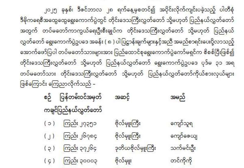 ရန်ကုန်မြို့နှင့် မန္တလေးမြို့အတွက် ရည်ညွှန်းလက်ကားဈေးနှုန်းများနှင့် ပြည်ထောင်စုနယ်မြေ နေပြည်တော်၊ တိုင်းဒေသကြီး/ ပြည်နယ် မြို့တော်များအတွက် ရည်ညွှန်းလက်လီဈေးနှုန်းများ