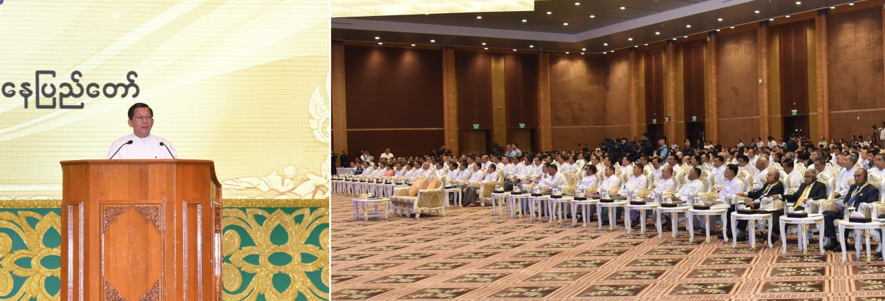 မြန်မာ့မျက်နှာစာသစ်ဖိုရမ်(ယုံကြည်မှု၊ တည်ငြိမ်အေးချမ်းမှုနှင့် ဖွံ့ဖြိုးတိုးတက်မှု) Forum on The Dawn of A New State (Trust, Stability & Development) ဖွင့်ပွဲအခမ်းအနားအား ယနေ့နံနက်ပိုင်းတွင် နေပြည်တော်ရှိ မြန်မာအပြည်ပြည်ဆိုင်ရာ ကွန်ဗင်းရှင်းဗဟိုဌာန(၁) (MICC-1) ၌ ကျင်းပပြုလုပ်ရာ ပြည်ထောင်စုသမ္မတမြန်မာနိုင်ငံတော် ယာယီသမ္မတ နိုင်ငံတော်လုံခြုံရေးနှင့် အေးချမ်းသာယာရေးကော်မရှင်ဥက္ကဋ္ဌ ဗိုလ်ချုပ်မှူးကြီး မင်းအောင်လှိုင် တက်ရောက်အမှာစကားပြောကြားသည်။