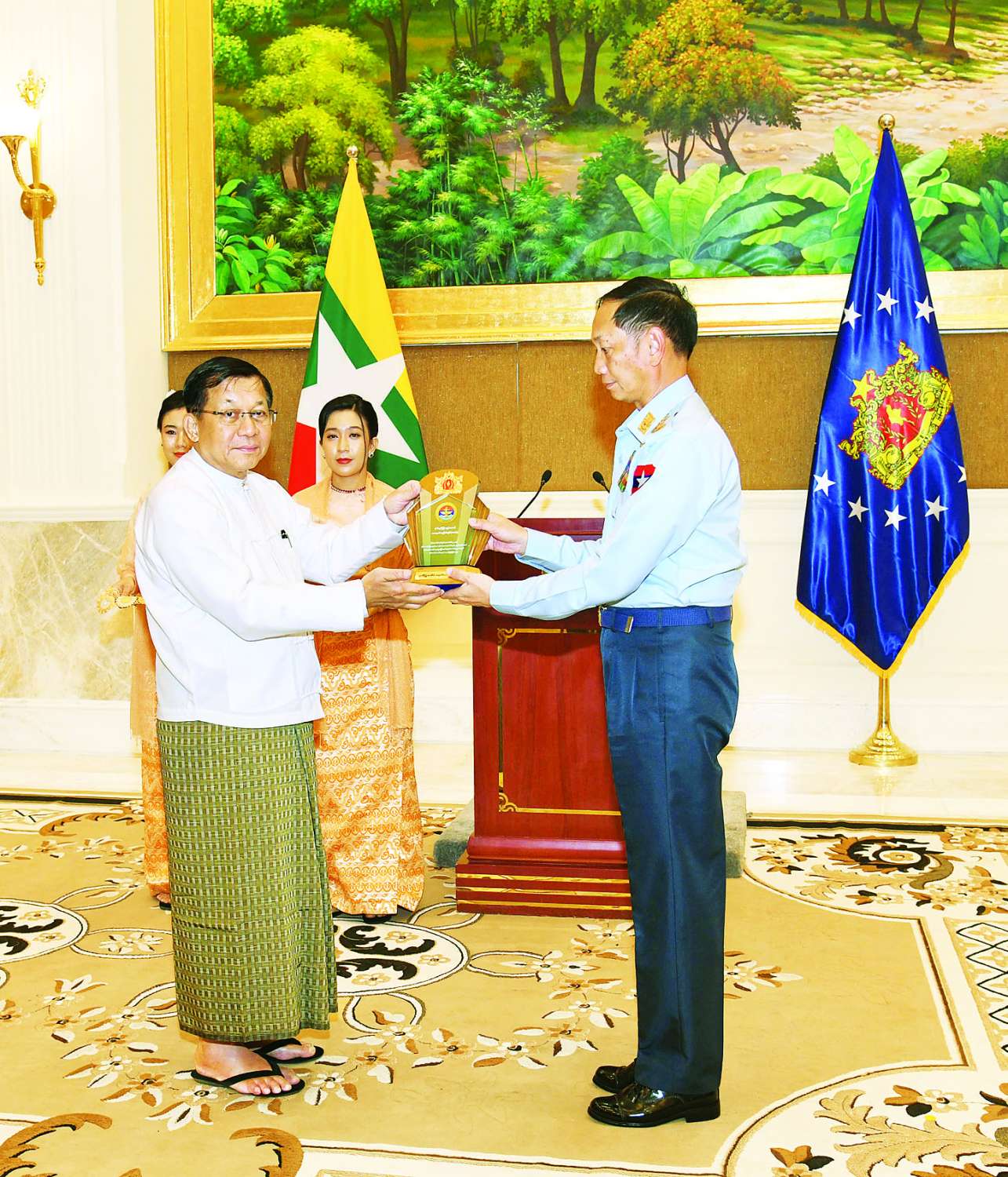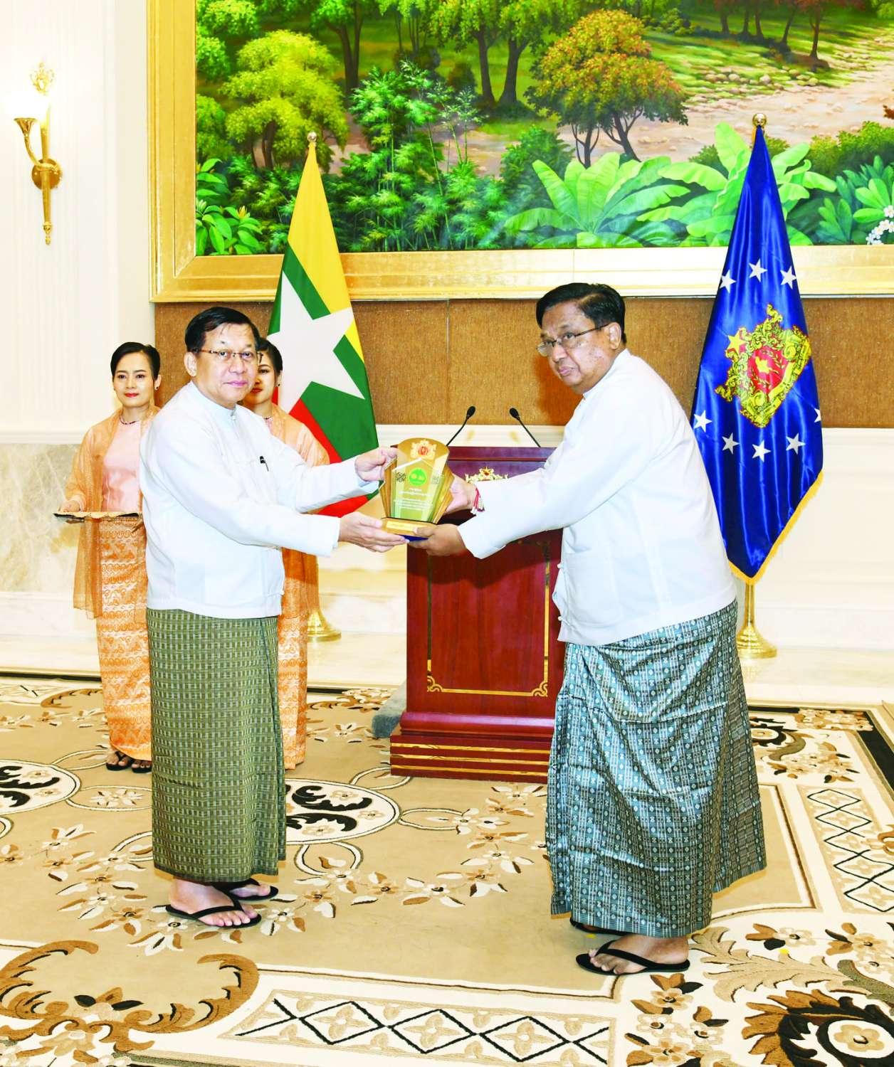 ထို့နောက် ရွေးကောက်တင်မြှောက်ခြင်းခံရသော သမ္မတ နိုင်ငံတော်လုံခြုံရေးနှင့် အေးချမ်းသာယာရေးကော်မရှင်ဥက္ကဋ္ဌ ဗိုလ်ချုပ်မှူးကြီး မင်းအောင်လှိုင်က ကော်မရှင်အဖွဲ့ဝင်များဖြစ်ကြသည့် ဗိုလ်ချုပ်ကြီး မောင်မောင်အေး၊ ဒုတိယဗိုလ်ချုပ်ကြီး ဖုန်းမြတ်၊ ဒုတိယဗိုလ်ချုပ်ကြီး ရာပြည့်၊ ဗိုလ်ချုပ်ကြီး ကျော်စွာလင်း၊ စက်မှုဝန်ကြီးဌာန ပြည်ထောင်စုဝန်ကြီး ဒေါက်တာ ချာလီသန်းနှင့် ကာကွယ်ရေးဦးစီးချုပ်ရုံးမှ အဆင့်မြင့်တပ်မတော်အရာရှိကြီးများ၊ အငြိမ်းစားအဆင့်မြင့်တပ်မတော်အရာရှိကြီးများအား ဂုဏ်ပြုအထိမ်းအမှတ်လက်ဆောင်များ ပေးအပ်ချီးမြှင့်သည်။