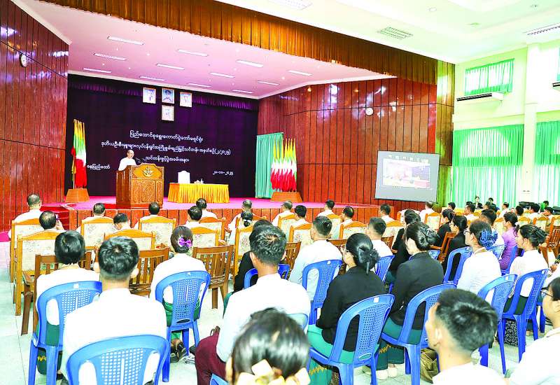 ပြည်ထောင်စုရွေးကောက်ပွဲကော်မရှင်ရုံးနှင့် မြို့နယ်ရွေးကောက်ပွဲကော်မရှင်အဖွဲ့ခွဲရုံးအသီးသီးတို့တွင် တာဝန်ထမ်းဆောင်ကြမည့် ဒုတိယဦးစီးမှူးများ လုပ်ငန်းခွင်အကြို စွမ်းရည်မြှင့်သင်တန်း အမှတ်စဉ် ( ၂ / ၂၀၂၅ ) သင်တန်းဖွင့်ပွဲကို ယနေ့နံနက်ပိုင်းတွင် ပုဗ္ဗသီရိမြို့နယ် ဆင်ဖြူရှင်ခန်းမ၌ ကျင်းပသည်။