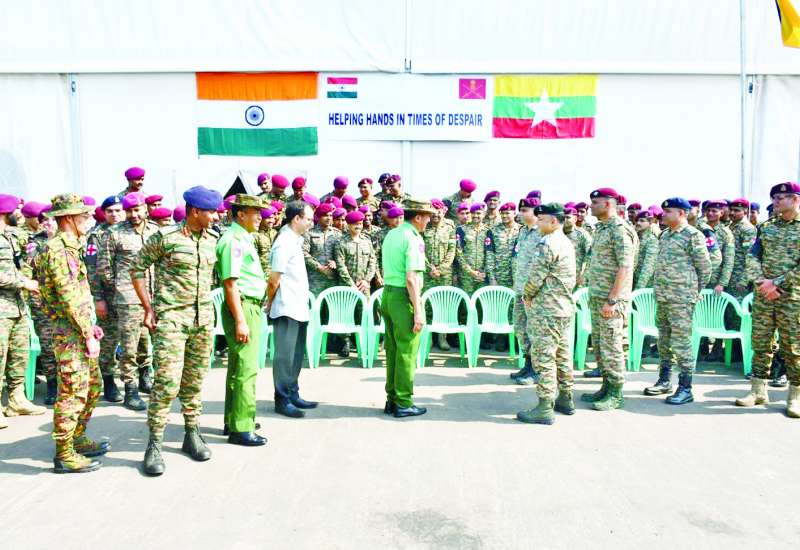 မန္တလေးတိုင်းဒေသကြီး ချမ်းမြသာစည်မြို့နယ် လေဆိပ်ဟောင်းနေရာ၌ အခြေပြု၍ ငလျင်ဒဏ်ကြောင့် ထိခိုက်ဒဏ်ရာရရှိသူများအား ယာယီဆေးရုံဖွင့်လှစ်ကာ ဆေးကုသမှုများ ဆောင်ရွက်ပေးခဲ့ပြီး ပြန်လည်ထွက်ခွာကြမည့် Lt. Col. Jagneet Gill ဦးဆောင်သည့် အိန္ဒိယတပ်မတော်ဆေးကုသရေးအဖွဲ့အား ယနေ့နံနက်ပိုင်းတွင် ကာကွယ်ရေးဦးစီးချုပ်ရုံး(ကြည်း)မှ ဒုတိယဗိုလ်ချုပ်ကြီးမျိုးမိုးအောင်၊ အလယ်ပိုင်းတိုင်းစစ်ဌာနချုပ် တိုင်းမှူးဗိုလ်မှူးချုပ်ကျော်ကိုထိုက်နှင့် တာဝန်ရှိသူများက သွားရောက်တွေ့ဆုံနှုတ်ဆက်သည်။