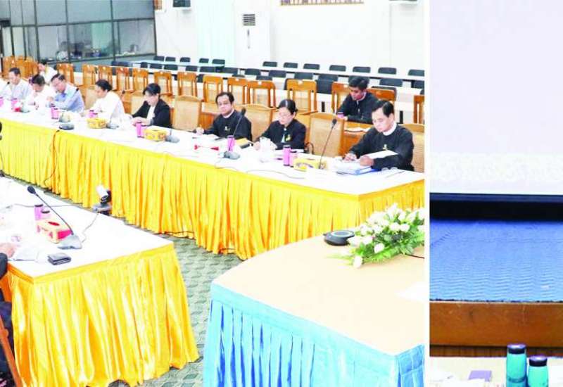 မြန်မာနိုင်ငံ ကလေးအလုပ်သမားပပျောက်ရေးဆိုင်ရာ ဥပဒေရေးရာလုပ်ငန်းကော်မတီ အဋ္ဌမအကြိမ် လုပ်ငန်းညိနှိုင်းအစည်းအဝေးကို ယနေ့မွန်းလွဲပိုင်းတွင် Hybrid Format ဖြင့် ဥပဒေရေးရာဝန်ကြီးဌာနရှိ အစည်းအဝေးခန်းမ၌ ကျင်းပရာ မြန်မာနိုင်ငံ ကလေးအလုပ်သမားပပျောက်ရေးဆိုင်ရာ ဥပဒေရေးရာလုပ်ငန်းကော်မတီဥက္ကဋ္ဌ ဥပဒေရေးရာဝန်ကြီးဌာန ဒုတိယဝန်ကြီးနှင့်ဒုတိယရှေ့နေချုပ် ဒေါက်တာထိန်လင်းဦး တက်ရောက်သည်။
