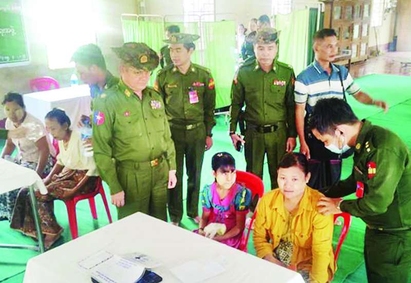 ရန်ကုန်တိုင်းဒေသကြီး မှော်ဘီမြို့နယ် ဓမ္မရေအေးကံကလေး ကျေးရွာအုပ်စုရှိ သံဃာတော်များနှင့် ဒေသခံပြည်သူများအား ယနေ့နံနက်ပိုင်းတွင် ရန်ကုန်တိုင်းစစ်ဌာနချုပ် နယ်လှည့်ဆေးကုသရေးအဖွဲ့က အဆိုပါကျေးရွာရှိ ကံကလေးကျောင်းတိုက်၌ ကျန်းမာရေးစောင့်ရှောက်မှုလုပ်ငန်းများ ဆောင်ရွက်ပေးသည်။