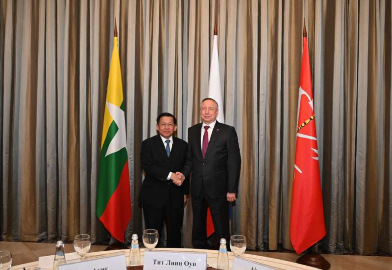 ရုရှားဖက်ဒရေးရှင်းနိုင်ငံသို့ ရုရှားဖက်ဒရေးရှင်းနိုင်ငံ၊ စိန့်ပီတာစဘတ်မြို့သို့ တရားဝင်ချစ်ကြည်ရေးခရီး ရောက်ရှိနေသည့် နိုင်ငံတော်စီမံအုပ်ချုပ်ရေးကောင်စီဥက္ကဋ္ဌ နိုင်ငံတော်ဝန်ကြီးချုပ် ဗိုလ်ချုပ်မှူးကြီး မင်းအောင်လှိုင်သည် စိန့်ပီတာစဘတ်မြို့အုပ်ချုပ်ရေးမှူး မစ္စတာအလက်ဇန္ဒားဘယ်ဂ်လော့နှင့် မတ်လ ၅ ရက်နေ့ဒေသစံတော်ချိန် ညနေပိုင်းတွင် စိန့်ပီတာစဘတ်မြို့၊ အစိုးရဧည့်ဂေဟာ K2 ရှိ အစည်းအဝေးခန်းမ၌ တွေ့ဆုံဆွေးနွေးသည်။
