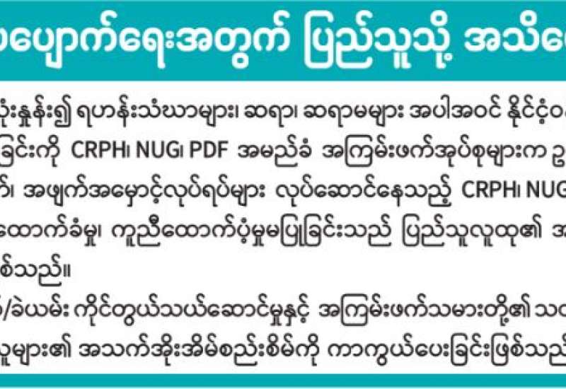 အကြမ်းဖက်မှုပပျောက်ရေးအတွက် ပြည်သူသို့ အသိပေးနှိုးဆော်ချက်