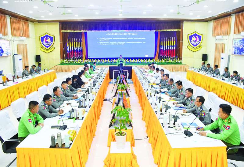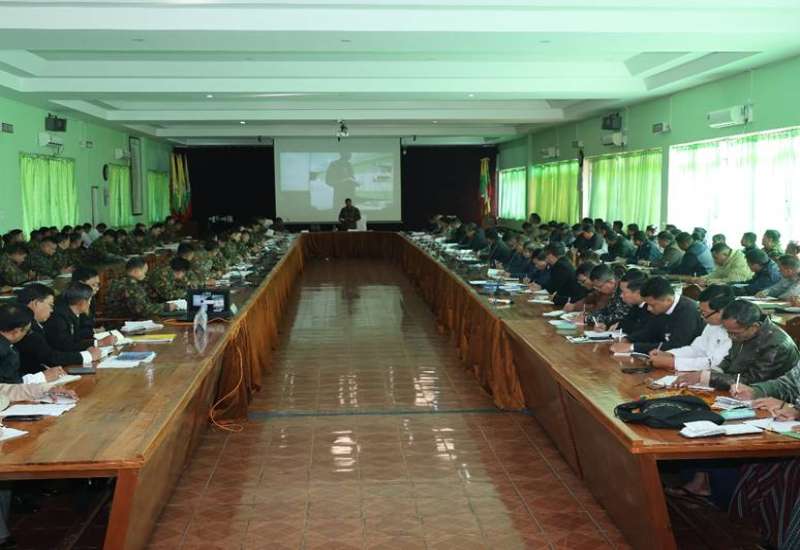 ရှမ်းပြည်နယ် (အရှေ့ပိုင်း)၊ မြို့နယ်များ၌ ဒီဇင်ဘာလ ၂၈ ရက်နေ့တွင် ကျင်းပခဲ့သည့် ၂၀၂၅ ခုနှစ်၊ ပါတီစုံဒီမိုကရေစီအထွေထွေရွေးကောက်ပွဲအပိုင်း (၁) ၏ အားနည်းချက်၊ အားသာချက်များအား ပြန်လည်သုံးသပ်ခြင်းနှင့် ရွေးကောက်ပွဲအပိုင်း (၂) ကျင်းပရန် ကျန်ရှိနေသေးသော မြို့နယ်များ၌ အောင်မြင်စွာကျင်းပနိုင်ရေး လုပ်ငန်းညှိနှိုင်းအစည်းအဝေးကို ယနေ့နံနက်ပိုင်းတွင် တြိဂံဒေသတိုင်းစစ်ဌာနချုပ် အစည်းအဝေးခန်းမ၌ ပြုလုပ်ခဲ့ရာ တိုင်းမှူး ဗိုလ်ချုပ် စိုးလှိုင်နှင့် အဖွဲ့ဝင်များ၊ ပြည်နယ်၊ ခရိုင်၊ မြို့နယ်အဆင့် ဌာနဆိုင်ရာတာဝန်ရှိသူများ၊ ရှမ်းပြည်နယ်(အရှေ့ပိုင်း) ရွေးကောက်ပွဲကော်မရှင်အဖွဲ့ခွဲမှ တာဝန်ရှိသူများ၊ ဌာနေပြည်သူ့စစ်အဖွဲ့ဝင်များနှင့် ဖိတ်ကြားထားသူများ တက်ရောက်ကြသည်။