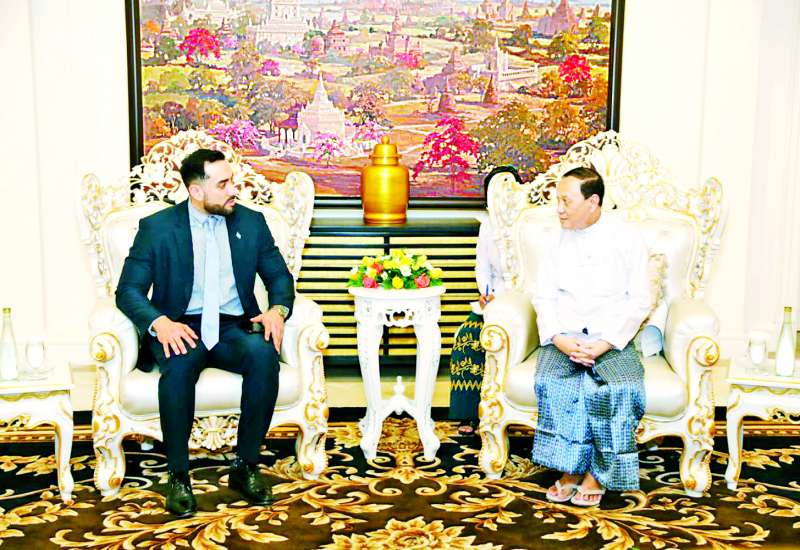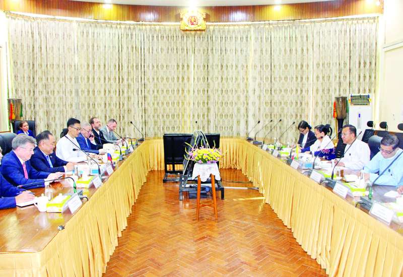 ဘဏ္ဍာရေးနှင့်အခွန်ဝန်ကြီးဌာန ပြည်ထောင်စုဝန်ကြီး ဒေါက်တာကံဇော်သည် ရုရှားဖက်ဒရေးရှင်းနိုင်ငံ ဒူးမားလွှတ်တော် ဒုတိယဥက္ကဋ္ဌ Mr. Sholban Kara-Ool နှင့် မြန်မာနိုင်ငံဆိုင်ရာ ရုရှားနိုင်ငံ သံအမတ်ကြီး H. E. Mr. Iskander Azizov တို့ ဦးဆောင်သော ကိုယ်စားလှယ်အဖွဲ့အား ယနေ့နံနက်ပိုင်းတွင် နေပြည်တော်ရှိ ပြည်တွင်းအခွန်များဦးစီးဌာန ရုံးအမှတ် (၄၆) ၌ လက်ခံတွေ့ဆုံသည်။