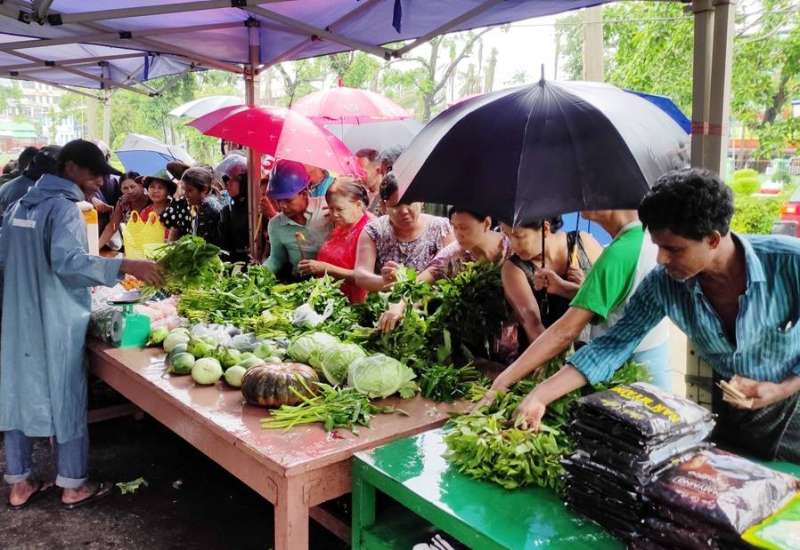 ဆိုင်ကလုန်းမုန်တိုင်း(မိုခါ)တိုက်ခတ်မှုကြောင့် ပျက်စီးမှုများ ဖြစ်ပေါ်ခဲ့သည့် စစ်တွေမြို့ရှိ မုန်တိုင်းဒဏ်သင့် ဒေသခံပြည်သူများနှင့် ဌာနဆိုင်ရာဝန်ထမ်းများ၏ စားသောက်ရေး အဆင်ပြေစေရန်နှင့် မိမိတို့အလိုရှိရာ စားသောက်ကုန်ပစ္စည်းများကို ဈေးနှုန်းသက်သာစွာဖြင့် ဝယ်ယူစားသောက်နိုင်ရေးအတွက် အနောက်ပိုင်းတိုင်း စစ်ဌာနချုပ်၊ နယ်မြေခံတပ်မတော်သားများနှင့် တာဝန်ရှိသူများက နေ့စဉ်ရောင်းချပေး လျက်ရှိသည်။