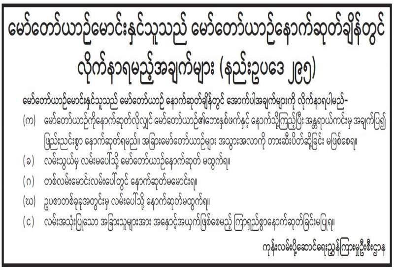 မော်တော်ယာဉ်မောင်းနှင်သူသည် မော်တော်ယာဉ်နောက်ဆုတ်ချိန်တွင် လိုက်နာရမည့် အချက်များ (နည်းဥပဒေ ၂၉၅)