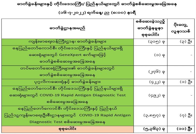 COVID-19 ရောဂါစောင့်ကြပ်ကြည့်ရှုမှုနှင့်ပတ်သက်၍ သတင်းထုတ်ပြန်ခြင်း (၁၆-၇-၂၀၂၂) ရက်နေ့၊ ည (၈:၀၀) နာရီ