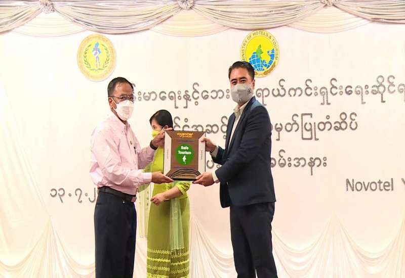 ဟိုတယ်နှင့် ခရီးသွားလာရေးဝန်ကြီးဌာန၊ ပြည်ထောင်စုဝန်ကြီး ဒေါက်တာဌေးအောင်သည် ဇူလိုင် ၁၃ ရက်၊ နံနက်ပိုင်းတွင် ရန်ကုန်မြို့ Hotel Yangon ရှိ ဝန်ထမ်းများ ကိုဗစ်-၁၉ ထပ်ဆောင်းကာကွယ်ဆေး ထိုးနှံခြင်းအခမ်းအနားသို့ တက်ရောက်၍ ဟိုတယ်ဝန်ထမ်း (၁၁၂)ဦး ကိုဗစ်-၁၉ ထပ်ဆောင်းကာကွယ်ဆေး ထိုးနှံပေးနေမှုများကို ရန်ကုန်တိုင်းဒေသကြီး အစိုးရအဖွဲ့ စီးပွားရေးရာဝန်ကြီး ဦးဇော်ဝင်း၊ မြန်မာနိုင်ငံ ခရီးသွားလုပ်ငန်းအဖွဲ့ချုပ်မှ တာဝန်ရှိသူများ၊ ဟိုတယ်ဆိုင်ရာ လုပ်ငန်းရှင်များအသင်း (ရန်ကုန်ဇုန်)မှ တာဝန်ရှိသူများနှင့်အတူ ကြည့်ရှုအားပေးသည်။