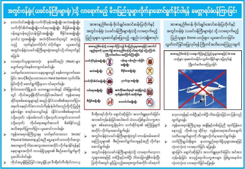 စီးပွားရေးနှင့်ကူးသန်းရောင်းဝယ်ရေးဝန်ကြီးဌာနအနေဖြင့် ကိုဗစ်-၁၉ ရောဂါ ကာကွယ်၊ ထိန်းချုပ်၊ ကုသရေးဆိုင်ရာပစ္စည်းများကို လေကြောင်း၊ ပင်လယ်ရေကြောင်းနှင့် နယ်စပ်ကုန်သွယ်ရေးစခန်းများမှ နှောင့်နှေးကြန့်ကြာမှုမရှိ တင်သွင်းနိုင်ရေးအတွက် အချိန်နှင့်တစ်ပြေးညီ စီစဉ်ဆောင်ရွက်ပေးလျက်ရှိရာ ယနေ့တွင် ချင်းရွှေဟော်ကုန်သွယ်ရေးစခန်းမှ ကုမ္ပဏီတစ်ခုနှာခေါင်းစည်းယာဉ်စီးရေ နှစ်စီးဖြင့် ၉ ဒသမ ၆၄ တန် တင်သွင်းခဲ့ကြောင်း သိရသည်။
