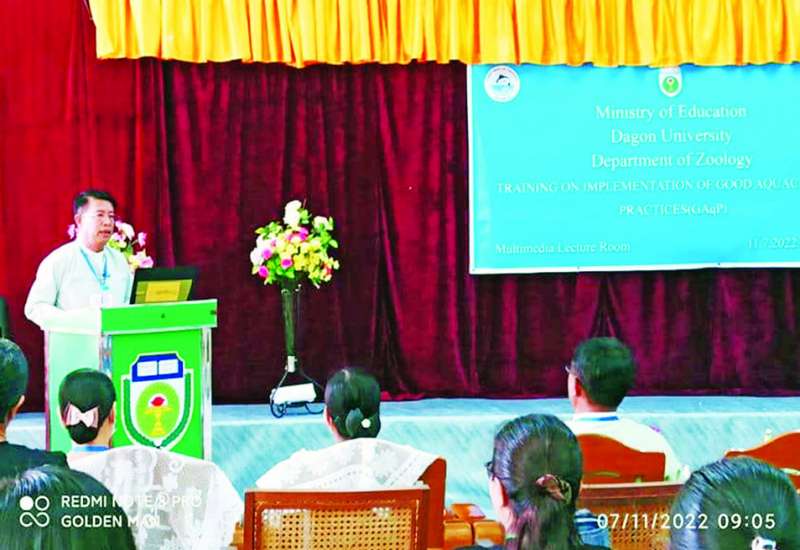 ရန်ကုန်တိုင်းဒေသကြီး ငါးလုပ်ငန်းဦးစီးဌာနနှင့် ဒဂုံတက္ကသိုလ်တို့ပူးပေါင်းပြီး သတ္တဗေဒဌာနမှ ကျောင်းသား ကျောင်းသူများအနေဖြင့် အခြေခံငါးမွေးမြူရေး၊ ငါးဆေးထိုးသားဖောက်ခြင်း နည်းပညာလေ့လာသင်ယူနိုင်ခြင်းနှင့် ကောင်းမွန်သော ရေသတ္တဝါမွေးမြူရေးကျင့်စဉ်များကို စာတွေ့လက်တွေ့ လေ့လာသင်ယူနိုင်ခြင်းဖြင့် ငါးလုပ်ငန်းကဏ္ဍ ရေရှည်ဖွံ့ဖြိုးတိုးတက်ရေးတွင် အထောက်အကူဖြစ်စေရန်နှင့် လူ့စွမ်းအားအရင်းအမြစ်များဖွံ့ဖြိုးတိုးတက်စေရန်ရည်ရွယ်၍ အခြေခံ ငါးမွေးမြူရေးနှင့် ရေချိုငါးများသားဖောက်နည်းပညာသင်တန်းနှင့် ကောင်းမွန်သော ရေသတ္တဝါမွေးမြူရေးကျင့်စဉ် (GAqP) သင်တန်းဖွင့်ပွဲ အခမ်းအနားကို ဇူလိုင် ၁၁ ရက်က ဒဂုံတက္ကသိုလ်ခန်းမ၌ ကျင်းပသည်။