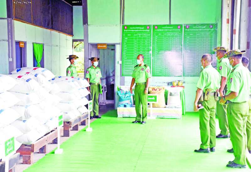 ဒေသတွင်းစားနပ်ရိက္ခာဖူလုံရေးနှင့် ပြည်သူများ၏ စားသောက်ရေးကို အထောက်အကူဖြစ်စေရန်အတွက် ယနေ့ညနေပိုင်းတွင် အနောက်တောင်တိုင်းစစ်ဌာနချုပ်တိုင်းမှူး ဗိုလ်ချုပ် အောင်အောင်နှင့် တာဝန်ရှိသူများသည် တိုင်းစစ်ဌာနချုပ် စံပြဘက်စုံစိုက်ပျိုးမွေးမြူရေးခြံတွင် တိုင်းဧရာ အစာစပ်စက်ရုံ အစာထုတ်လုပ်နေမှုလုပ်ငန်းများ ဆောင်ရွက်ထားရှိမှုကို ကြည့်ရှု စစ်ဆေးပြီး (အပေါ်ပုံ)တာဝန်ရှိသူများနှင့်တွေ့ဆုံကာ လိုအပ်သည်များ ပေါင်းစပ်ညှိနှိုင်း ဆောင်ရွက်ပေးသည်။