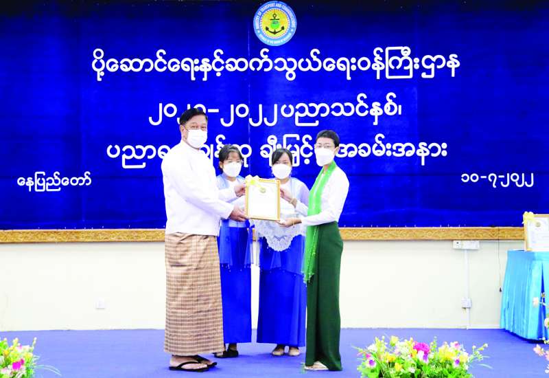 ၂၀၂၁-၂၀၂၂ ပညာသင်နှစ် တက္ကသိုလ်ဝင်စာမေးပွဲတွင် ထူးချွန်စွာအောင်မြင်ခဲ့ကြသည့် ပို့ဆောင်ရေးနှင့်ဆက်သွယ်ရေးဝန်ကြီးဌာနမှ ဝန်ထမ်းများ၏ သားငယ်သမီးငယ်၊ ကျောင်းသား ကျောင်းသူများ အား ဂုဏ်ပြုချီးမြှင့်သည့်အခမ်းအနားကို ပို့ဆောင်ရေးနှင့် ဆက်သွယ်ရေးဝန်ကြီး ဌာန ရုံးအမှတ်(၂)၌ ယနေ့ နံနက် ၈ နာရီ တွင် ကျင်းပသည်။