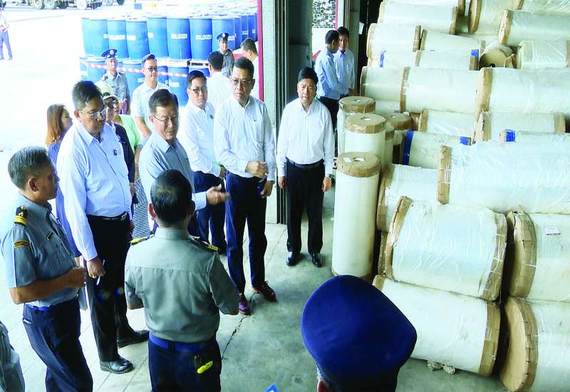 ကုန်သွယ်မှုနှင့် ကုန်စည်စီးဆင်းမှုများ မှန်ကန်မြန်ဆန်စေရေးလုပ်ငန်းကော်မတီဥက္ကဋ္ဌ၊ စီးပွားရေးနှင့်ကူးသန်းရောင်းဝယ်ရေးဝန်ကြီးဌာန ဒုတိယဝန်ကြီး ဦးမင်းမင်း၊ ဘဏ္ဍာရေးနှင့်အခွန်ဝန်ကြီးဌာန ဒုတိယဝန်ကြီး ဦးဟန်ဝင်းအောင်တို့သည် ယနေ့တွင် ရန်ကုန်အပြည်ပြည်ဆိုင်ရာဆိပ်ကမ်းများနှင့် ယာယီ အပြည်ပြည်ဆိုင်ရာဆိပ်ကမ်းများသို့ ဆိုက်ကပ်ရောက်ရှိလာသော ရန်ကုန် - ရနောင်း နယ်စပ်ကုန်သွယ်မှု အထွေထွေကုန်ပစ္စည်းတင် ကုန်တင်သင်္ဘောများ၏ ဆိပ်ကမ်းများသို့ ဆိုက်ကပ်ဝင်ရောက်မှု၊ ကုန်စည်များ ရှင်းလင်းထုတ်ယူနေမှုအခြေအနေများကို ကွင်းဆင်းကြည့်ရှုစစ်ဆေးသည်။