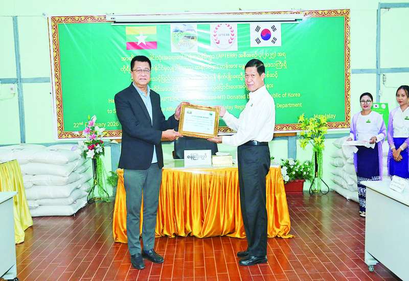 အာဆီယံအပေါင်းသုံး အရေးပေါ်ဆန်ရိက္ခာ (APTERR) အစီအစဉ်-၃ (၂၀၂၅) အရ ကိုရီးယားသမ္မတနိုင်ငံမှ လှူဒါန်းသော ဆန်တန်ချိန် ၁၆၂၀ ကို မန္တလေးတိုင်းဒေသကြီး စိုက်ပျိုးရေးဦးစီးဌာနမှတစ်ဆင့် မန္တလေးတိုင်းဒေသကြီးအစိုးရအဖွဲ့ထံသို့ လွှဲပြောင်းပေးအပ်ပွဲအခမ်းအနားကို ယနေ့မွန်းလွဲပိုင်းက ချမ်းမြသာစည်မြို့နယ်ရှိ တိုင်းဒေသကြီး စိုက်ပျိုးရေးဦးစီးဌာန၌ ကျင်းပသည်။