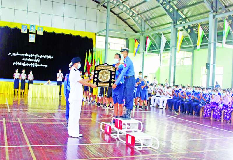 ၂၀၂၂ ခုနှစ် ကာကွယ်ရေးဦးစီးချုပ်(ရေ)တံခွန်စိုက်ဒိုင်း ဘော်လီဘောပြိုင်ပွဲ ဗိုလ်လုပွဲနှင့် ဆုပေးပွဲကို ယနေ့နံနက်ပိုင်းတွင် ဧရာဝတီရေတပ်စခန်းဌာနချုပ်ရှိ သီဟသူရထွန်းတင်ခန်းမ၌ ပြုလုပ်ရာ ကာကွယ်ရေးဦးစီးချုပ်(ရေ)ကိုယ်စား ဧရာဝတီရေတပ်စခန်းဌာနချုပ် ဌာနချုပ်မှူး ဗိုလ်မှူးချုပ် အေးမင်းထွေးနှင့် အရာရှိ၊ စစ်သည်၊ မိသားစုဝင်များ၊ မြန်မာနိုင်ငံဘော်လီဘောအဖွဲ့ချုပ်မှ တာဝန်ရှိသူများ၊ ပြိုင်ပွဲဝင်အားကစားသမားများနှင့် အားကစားဝါသနာရှင်များ တက်ရောက်ကြသည်။