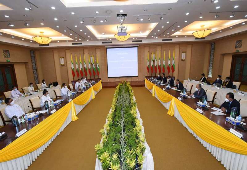 အာဆီယံအလှည့်ကျ ဥက္ကဋ္ဌ၏ မြန်မာနိုင်ငံဆိုင်ရာ အထူးကိုယ်စားလှယ်၊ ကမ္ဘောဒီးယားနိုင်ငံ ဒုတိယဝန်ကြီးချုပ်၊ နိုင်ငံခြားရေးနှင့် အပြည်ပြည်ဆိုင်ရာ ပူးပေါင်းဆောင်ရွက်ရေး ဝန်ကြီး H.E.Mr. Prak Sokhonn နှင့် NCA လက်မှတ်ရေးထိုးထားသည့် တိုင်းရင်းသားလက်နက်ကိုင် အဖွဲ့အစည်း(၇)ဖွဲ့တို့သည် ယနေ့နံနက်ပိုင်းတွင် နေပြည်တော်ရှိ အမျိုးသား စည်းလုံးညီညွတ်ရေးနှင့် ငြိမ်းချမ်းရေးဖော်ဆောင်မှု ဗဟိုဌာနအစည်းအဝေး ခန်းမ၌ တွေ့ဆုံသည်။