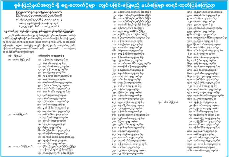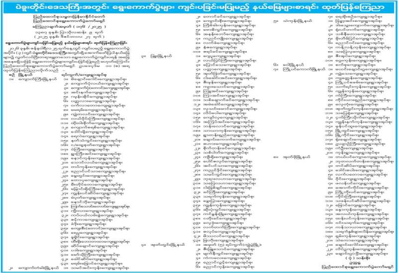 မန္တလေးတိုင်းဒေသကြီးအတွင်း ရွေးကောက်ပွဲများကျင်းပခြင်းမပြုမည့် နယ်မြေများစာရင်း ထုတ်ပြန်ကြေညာ