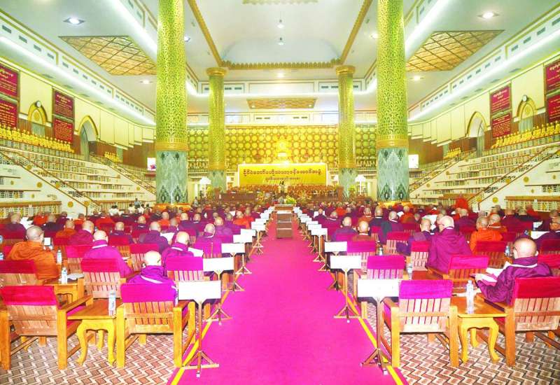 နဝမအကြိမ် နိုင်ငံတော်ဗဟိုသံဃာ့ဝန်ဆောင်အဖွဲ့၊ ဒုတိယ အစည်းအဝေးသို့ နိုင်ငံတော်တစ်ဝန်းလုံးရှိ တိုင်းဒေသကြီး/ပြည်နယ်အသီးသီးမှ ကြွရောက်တော်မူလာကြကုန်သော နိုင်ငံတော်ဩဝါဒါစရိယဆရာတော်ကြီးများ အမှူးရှိသော နိုင်ငံတော် သံဃမဟာနာယက ဆရာတော်များနှင့် နိုင်ငံတော်ဗဟိုသံဃာ့ဝန်ဆောင် ဆရာတော်အရှင်မြတ်တို့ဘုရား။