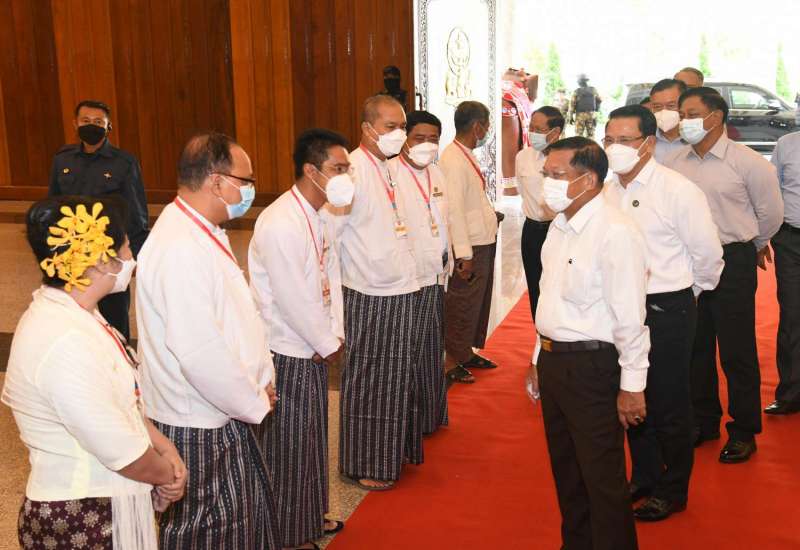နိုင်ငံတော်စီမံအုပ်ချုပ်ရေးကောင်စီ ဥက္ကဋ္ဌ၊ နိုင်ငံတော်ဝန်ကြီးချုပ် ဗိုလ်ချုပ်မှူးကြီး မင်းအောင်လှိုင်သည် ယနေ့မွန်းလွဲပိုင်းတွင် စာပေ၊ ရုပ်ရှင်၊ သဘင်၊ ဂီတ အနုပညာရှင်များနှင့် ရန်ကုန်တိုင်းစစ်ဌာနချုပ်၊ ကုန်းမြင့်သာရှိ ဇေယျာသီရိဗိမာန် ဧည့်ခန်းမဆောင်တွင် တွေ့ဆုံပြီး စာပေ၊ ရုပ်ရှင်၊ သဘင်၊ ဂီတပိုင်းဆိုင်ရာ ကဏ္ဍများမှတဆင့် နိုင်ငံတော် ဖွံ့ဖြိုးတိုးတက်ရေး လုပ်ဆောင်နိုင်မည့် အခြေအနေများနှင့် ပတ်သက်၍ ဆွေးနွေး ပြောကြားသည်။