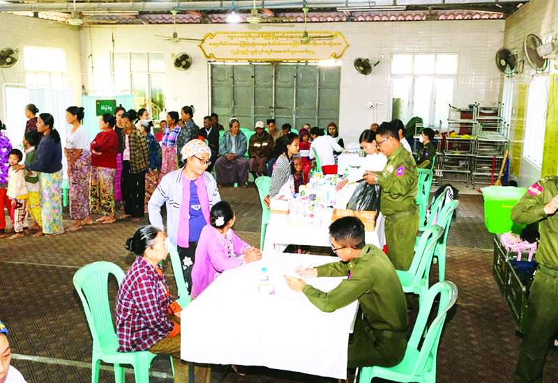 တပ်မတော်အနေဖြင့် ပြည်သူလူထု၏ ကျန်းမာရေးကဏ္ဍတိုးတက်မြင့်မားစေရန်အတွက် ကျန်းမာရေးစောင့်ရှောက်မှုလုပ်ငန်းများတွင် တစ်ဖက်တစ်လမ်းမှ ကူညီ စောင့်ရှောက်မှုများ ဆောင်ရွက် ပေးလျက်ရှိရာ ယနေ့နံနက်ပိုင်းတွင် ရန်ကုန်တိုင်းဒေသကြီး မှော်ဘီမြို့နယ် ဥသျှစ်ကုန်းကျေးရွာနှင့် ပတ်ဝန်းကျင်ကျေးရွာများရှိ သံဃာတော်များနှင့် ဒေသခံပြည်သူများအား ရန်ကုန်တိုင်းစစ်ဌာနချုပ် နယ်လှည့်ဆေးကုသရေးအဖွဲ့က အဆိုပါကျေးရွာရှိ အခြေခံပညာအထက်တန်းကျောင်း (ခွဲ) ၌ ကျန်းမာရေးစောင့်ရှောက်မှုလုပ်ငန်းများ ဆောင်ရွက်ပေးသည်။