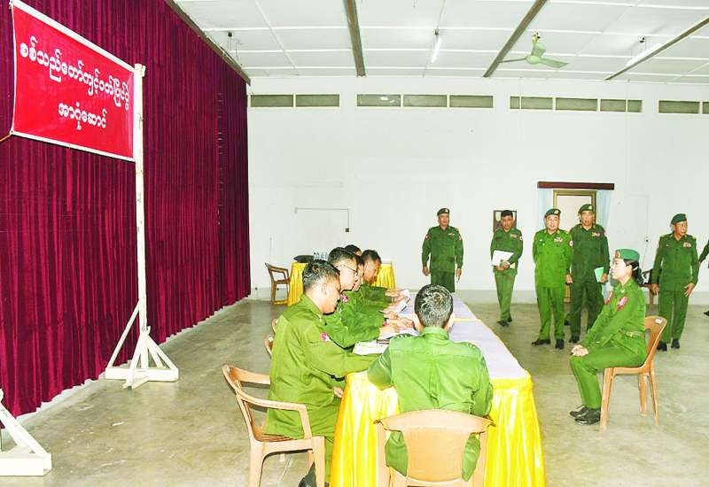 ၂၀၂၆ ခုနှစ် (၈၁) နှစ်မြောက် တပ်မတော်နေ့ အထိမ်းအမှတ် စစ်သည်တော်ကျင့်ဝတ်ပြိုင်ပွဲကို ယနေ့နံနက်ပိုင်းတွင် ရန်ကုန်တိုင်းစစ်ဌာနချုပ် အနော်ရထာခန်းမ၌ ပြုလုပ်ရာ အရာရှိ၊ အရာခံ၊ အကြပ်အဆင့် စစ်သည်တော်ကျင့်ဝတ်ရေးဖြေနှင့် တပ်သားအဆင့် ရေးဖြေ၊ နှုတ်ဖြေ ဖြေဆိုနေမှုများကို တိုင်းမှူး ဗိုလ်ချုပ် ပြည့်စုံလင်းနှင့် တာဝန်ရှိသူများက လိုက်လံကြည့်ရှုအားပေးကြ သည်။