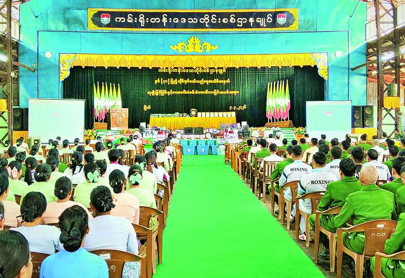 ၂၀၂၆ ခုနှစ် သာသနာတော်ဆိုင်ရာ ဘွဲ့တံဆိပ်တော်များရရှိကြသည့် ထေရ်ကြီး၊ ဝါကြီးဆရာတော်ကြီးများအား ဘွဲ့တံဆိပ်တော်များ ဆက်ကပ်ပူဇော်ခြင်းကို ယနေ့တွင် ကချင်ပြည်နယ် မြစ်ကြီးနားမြို့ မင်းရပ်ရပ်ကွက်ရှိ သာသနာ့ဗိမာန်တော်ကြီး၌ ကျင်းပပြုလုပ်ရာ ပြည်နယ်သံဃနာယကအဖွဲ့ အကျိုးတော်ဆောင်၊ မြစ်ကြီးနားမြို့ ဓမ္မရက္ခိတဝန်းသို ကျောင်းတိုက်နာယက ဆရာတော် အဂ္ဂမဟာ ပဏ္ဍိတ ဘဒ္ဒန္တကေတုမာလာ အမှူးပြုသော ဆရာတော်၊ သံဃာတော်များ ကြွရောက်တော်မူကြပြီး ကချင်ပြည်နယ်ဝန်ကြီးချုပ် ဦးခက်ထိန်နန်၊ မြောက်ပိုင်းတိုင်းစစ်ဌာနချုပ်တိုင်းမှူး ဗိုလ်ချုပ် အောင်ဇော်ထွေးနှင့် ဌာနဆိုင်ရာတာဝန်ရှိသူများ တက်ရောက်ကြသည်။