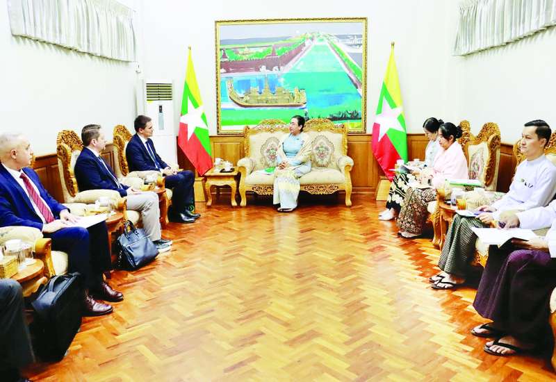 ရင်းနှီးမြှုပ်နှံမှုနှင့် နိုင်ငံခြားစီးပွားဆက်သွယ်ရေးဝန်ကြီးဌာန ပြည်ထောင်စုဝန်ကြီး ဒေါက်တာဝါဝါမောင်သည် ရုရှားဖက်ဒရေးရှင်းနိုင်ငံ “Sberbank” ၏ အိန္ဒိယဘဏ်ခွဲမှ ဒုတိယမန်နေဂျင်းဒါရိုက်တာ မစ္စတာ အန်ဒရီအာနီစီမော့စ် ဦးဆောင်သည့် ကိုယ်စားလှယ်အဖွဲ့အား ယနေ့တွင် ရုံးအမှတ် (၁) နေပြည်တော်၌ လက်ခံတွေ့ဆုံသည်။