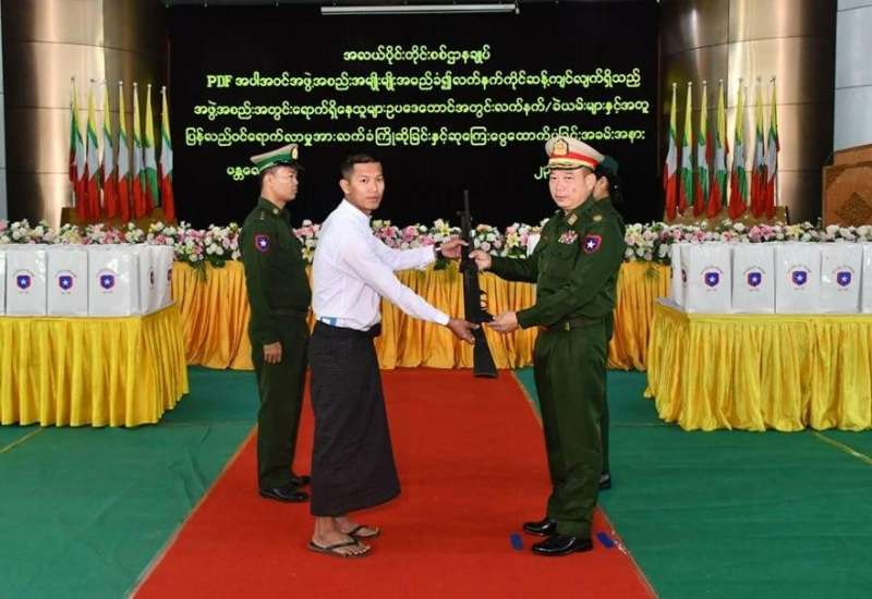 နိုင်ငံတော်အစိုးရသည် PDF အပါအဝင် အဖွဲ့အစည်းအမျိုးမျိုးအမည်ခံ၍ လက်နက်ကိုင်ဆန့်ကျင်လျက်ရှိသည့် အဖွဲ့အစည်းများအတွင်း ရောက်ရှိနေသူများအား ဥပဒေဘောင်အတွင်းသို့ ပြန်လည်ဝင်ရောက်ရန်ဖိတ်ခေါ်၍ ဥပဒေဘောင်အတွင်းသို့ ပြန်လည်ဝင်ရောက်လာကြသူများကိုလည်း လိုအပ်သည့် ကူညီပံ့ပိုးမှုများ ဆောင်ရွက်ပေးလျက်ရှိသည်။