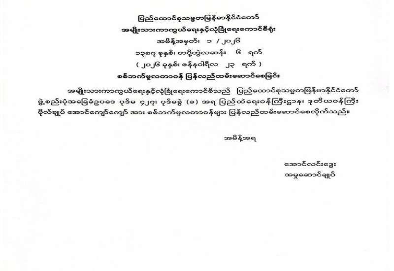 ရန်ကုန်မြို့နှင့် မန္တလေးမြို့အတွက် ရည်ညွှန်းလက်ကားဈေးနှုန်းများနှင့် ပြည်ထောင်စုနယ်မြေ နေပြည်တော်၊ တိုင်းဒေသကြီး/ပြည်နယ် မြို့တော်များအတွက် ရည်ညွှန်းလက်လီဈေးနှုန်းများ