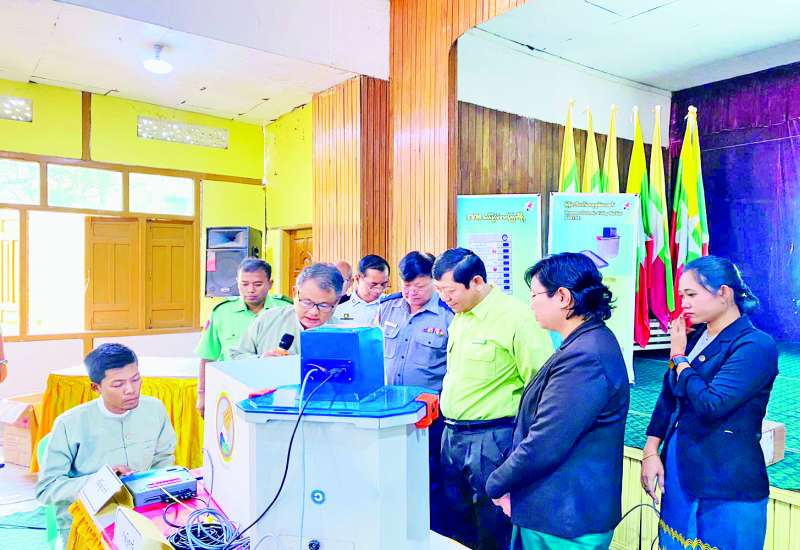 ပဲခူးတိုင်းဒေသကြီး နယ်မြေရှိ မဲဆန္ဒရှင်ပြည်သူများအား မြန်မာအီလက်ထရောနစ်မဲပေးစက်ဖြင့် လက်တွေ့စမ်းသပ်မဲပေးလေ့လာခြင်းကို ဧပြီ ၂၅ ရက်မှစ၍ ဆောင်ရွက်လျက်ရှိရာ ယနေ့တွင် ရွှေတောင်မြို့နယ် ရပ်ကွက်နှင့် ကျေးရွာအုပ်စု ၅၁ ခုမှ ပြည်သူ ၃၃၁ ဦး၊ ပန်းတောင်းမြို့နယ် ရပ်ကွက်နှင့် ကျေးရွာအုပ်စု ၄၉ ခုမှ ပြည်သူ ၃၀၆ ဦး စုစုပေါင်း ၆၃၇ ဦး တက်ရောက်ပြီး လက်တွေ့စမ်းသပ်မဲပေးလေ့လာကြသည်။
