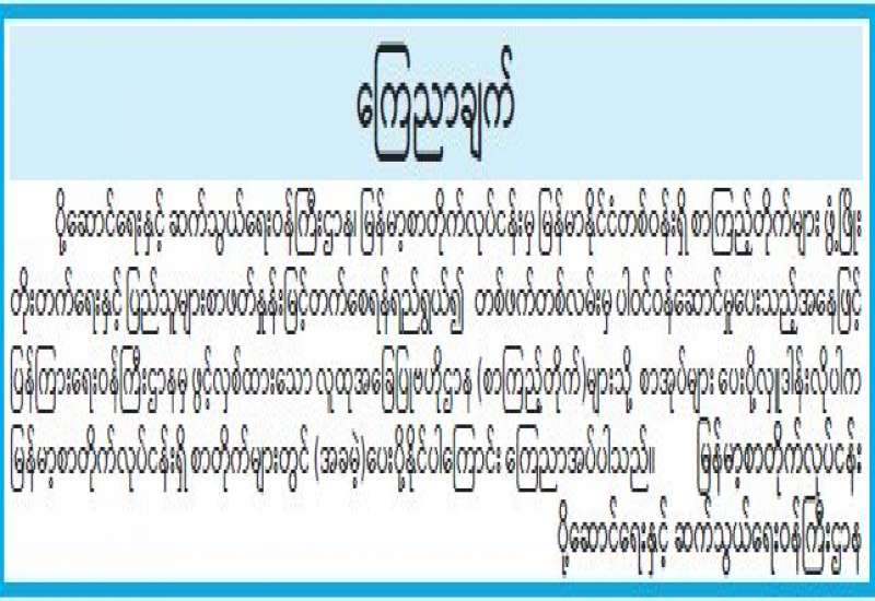 ရန်ကုန်မြို့နှင့် မန္တလေးမြို့အတွက် ရည်ညွှန်းလက်ကားဈေးနှုန်းများနှင့် ပြည်ထောင်စုနယ်မြေ နေပြည်တော်၊ တိုင်းဒေသကြီး/ပြည်နယ် မြို့တော်များအတွက် ရည်ညွှန်းလက်လီဈေးနှုန်းများ