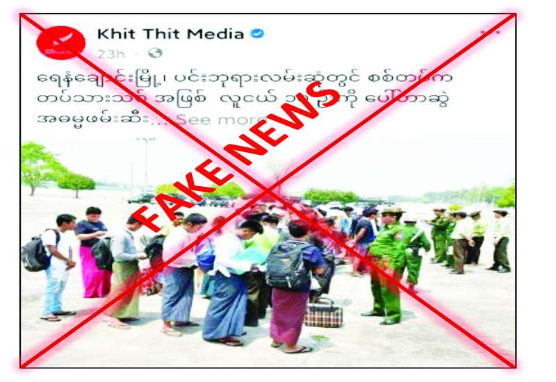 မကွေးတိုင်းဒေသကြီး ရေနံချောင်းမြို့ ပင်းဘုရားလမ်းဆုံတွင် ဧပြီ ၂၅ ရက်က ဆိုင်ကယ်စီးနင်းလာသည့် လမ်းသွားလမ်းလာလူငယ် ၁၀ ဦးကို လုံခြုံရေးတပ်ဖွဲ့ဝင်များက စစ်မှုထမ်းဆောင်ရန် ပေါ်တာဆွဲ ဖမ်းဆီးခေါ်ဆောင်သွားကြောင်း မှန်ကန်မှုမရှိသည့် သတင်းတု၊ သတင်းအမှားများကို ပြည်သူများစိုးရိမ်ထိတ်လန့်စေရန်နှင့် လုံခြုံရေးတပ်ဖွဲ့ဝင်များအပေါ် အထင်အမြင်လွဲမှားစေရန် အတွက် တရားမဝင်ပြည်ဖျက်မီဒီယာ Khit Thit က လုပ်ကြံရေးသားဖြန့်ဝေနေသည်ကို တွေ့ရှိရ သည်။