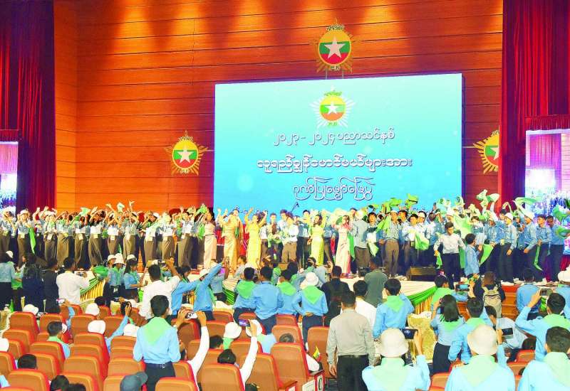 ၂၀၂၃ - ၂၀၂၄ ပညာသင်နှစ်အတွက် ရွေးချယ်ခံရသော လူရည်ချွန်မောင်မယ်များ ဂုဏ်ပြုဖျော်ဖြေပွဲကို ယနေ့မွန်းလွဲပိုင်းတွင် နေပြည်တော်ရှိ မြန်မာအပြည်ပြည်ဆိုင်ရာကွန်ဗင်းရှင်းဗဟိုဌာန (၂) ၌ ကျင်းပရာ ပြန်ကြားရေးဝန်ကြီးဌာန ပြည်ထောင်စုဝန်ကြီး ဦးမောင်မောင်အုန်း၊ ပညာရေးဝန်ကြီးဌာန ပြည်ထောင်စုဝန်ကြီး ဒေါက်တာညွန့်ဖေနှင့် တာဝန်ရှိသူများ တက်ရောက်ကြည့်ရှုအားပေးကြသည်။