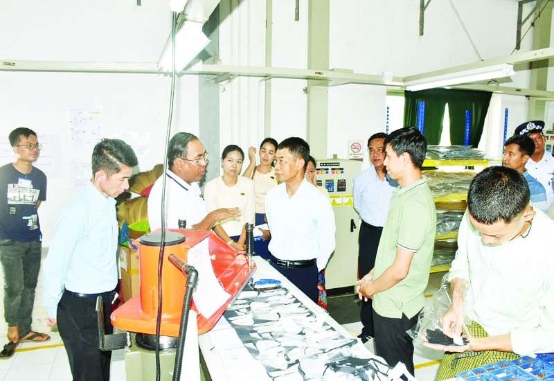 စီးပွားရေးနှင့် ကူးသန်းရောင်းဝယ်ရေးဝန်ကြီးဌာန ပြည်ထောင်စုဝန်ကြီး ဦးထွန်းအုံသည် ဌာနဆိုင်ရာ တာဝန်ရှိသူများနှင့်အတူ ယနေ့ညနေပိုင်းတွင် ပဲခူးတိုင်းဒေသကြီး ပဲခူးစက်မှုဇုန်ရှိ Bago Sports Gloves Co.,Ltd ၏ လက်အိတ်စက်ရုံသို့ရောက်ရှိရာ တာဝန်ရှိသူများက ထုတ်လုပ်ပြီး အားကစားလက်အိတ်များ ပြည်ပသို့ တင်ပို့နိုင်မှုအခြေအနေတို့ကို ရှင်းလင်းတင်ပြသည်။