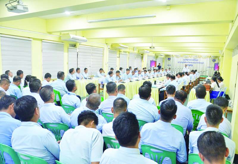 ရန်ကုန်တိုင်းဒေသကြီးအတွင်း လျှပ်စစ်ဓာတ်အား ဖြန့်ဖြူးပေးနေမှုအခြေအနေများနှင့် ပတ်သက်၍ ဝန်ထမ်းများတွေ့ဆုံပွဲကို ယနေ့နံနက်ပိုင်းတွင် ရန်ကုန်တိုင်းဒေသကြီး အလုံမြို့နယ်ရှိ ရန်ကုန်လျှပ်စစ် ဓာတ်အားပေးရေးကော်ပိုရေးရှင်း(ရုံးချုပ်) အစည်းအဝေးခန်းမ၌ ကျင်းပသည်။