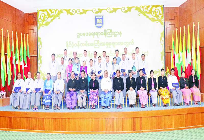နိုင်ငံ့ဝန်ထမ်းအကြီးအမှူးများ အတွက်ဥပဒေအသိပညာပြန့်ပွားရေးသင်တန်း အမှတ်စဉ်(၄) သင်တန်းဆင်းပွဲ အခမ်းအနားကို ယနေ့နံနက်ပိုင်းက ဥပဒေရေးရာဝန်ကြီးဌာန မြေညီထပ် အစည်းအဝေးခန်းမ၌ ကျင်းပသည်။