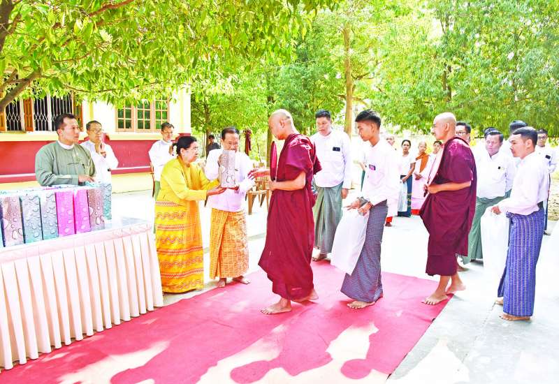 ပြည်ထောင်စုရွေးကောက်ပွဲကော်မရှင်၏ ပထမအကြိမ် စုပေါင်းရဟန်းခံ၊ သီလရှင်ဝတ် အလှူတော်မင်္ဂလာအခမ်းအနားကို ယနေ့နံနက် ၉ နာရီတွင် နေပြည်တော် ဇေယျာသီရိမြို့နယ် ရတနာစံပရိယတ္တိ စာသင်တိုက်တွင် ကျင်းပရာ ပြည်ထောင်စုရွေးကောက်ပွဲကော်မရှင်ဥက္ကဋ္ဌ ဦးကိုကိုနှင့်ဇနီး၊ ဖိတ်ကြားထားသော ဧည့်သည်တော်များ၊ ကော်မရှင်အဖွဲ့ဝင်များနှင့် ဇနီးများ၊ အမြဲတမ်းအတွင်းဝန်၊ ဝန်ထမ်းများနှင့် ဝန်ထမ်းမိသားစုများ တက်ရောက်ကြသည်။