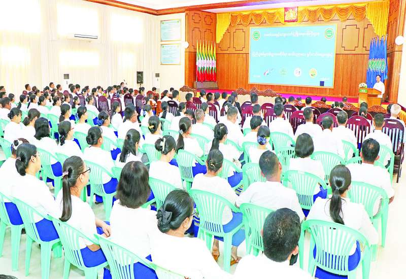 ပြည်သူ့စစ်မှုထမ်းဥပဒေဆိုင်ရာ အသိပညာပေးဟောပြောပွဲအခမ်းအနားကို ယနေ့နံနက်ပိုင်းက သမဝါယမနှင့်ကျေးလက်ဖွံ့ဖြိုးရေးဝန်ကြီးဌာန အစည်းအဝေးခန်းမ၌ကျင်းပရာ ပြည်ထောင်စုဝန်ကြီး ဦးလှမိုး၊ ဒုတိယဝန်ကြီး ဦးမြင့်စိုး၊ အမြဲတမ်းအတွင်းဝန်၊ ညွှန်ကြားရေးမှူးချုပ်များနှင့် အရာထမ်း၊ အမှုထမ်း ဝန်ထမ်းများ တက်ရောက်ကြသည်။