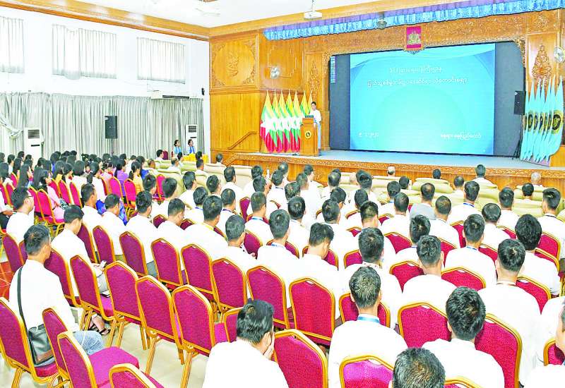 နိုင်ငံခြားရေးဝန်ကြီးဌာနတွင် တာဝန်ထမ်းဆောင်လျက်ရှိသော နိုင်ငံ့ဝန်ထမ်းများအနေဖြင့် ပြည်သူ့စစ်မှုထမ်းဥပဒေနှင့်ပတ်သက်၍ သိကောင်းစရာများကို သိရှိနားလည်စေရန်၊ နိုင်ငံ့ဝန်ထမ်းများအနေဖြင့် လိုအပ်သည်များ ပံ့ပိုးကူညီဆောင်ရွက်နိုင်စေရန်၊ နိုင်ငံတကာ သံတမန်များအား စစ်မှုထမ်းဥပဒေနှင့် ပတ်သက်သော သတင်းအမှန်များကို မျှဝေပေးနိုင်စေရန်၊ ပြည်သူ့စစ်မှုထမ်းဥပဒေနှင့်ပတ်သက်၍ သတင်းအမှားများကြောင့် ပြည်သူများအကြား ဖြစ်ပေါ်လျက်ရှိသော စိုးရိမ်စိတ်များကို လျော့ကျစေရေး ထပ်ဆင့်ရှင်းလင်းနိုင်စေရန် ရည်ရွယ်၍ သိကောင်းစရာများ ရှင်းလင်းပြောကြားသည့်အခမ်းအနားကို ယနေ့ မွန်းလွဲပိုင်းတွင် နိုင်ငံခြားရေးဝန်ကြီးဌာန လောကနတ်ခန်းမ၌ ကျင်းပသည်။