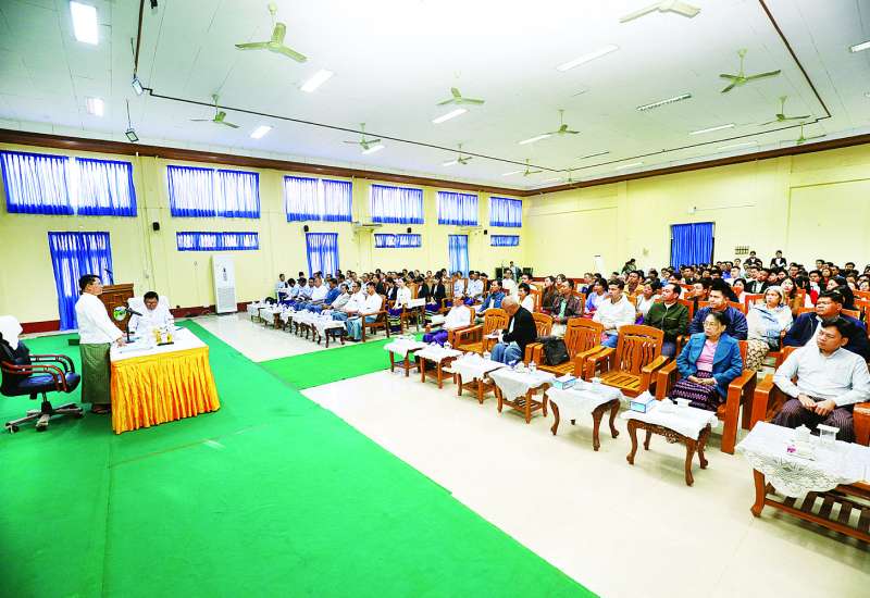 သိပ္ပံနှင့်နည်းပညာဝန်ကြီးဌာန၏ နှစ်အလိုက်စွမ်းဆောင်ရည် ပြန်လည်သုံးသပ်ခြင်းဆိုင်ရာအလုပ်ရုံဆွေးနွေးပွဲကို ယနေ့နံနက်ပိုင်းတွင် နေပြည်တော် သိပ္ပံနှင့်နည်းပညာဝန်ကြီးဌာန စုဝေးခန်းမ၌ Hybrid စနစ်ဖြင့် ကျင်းပသည်။