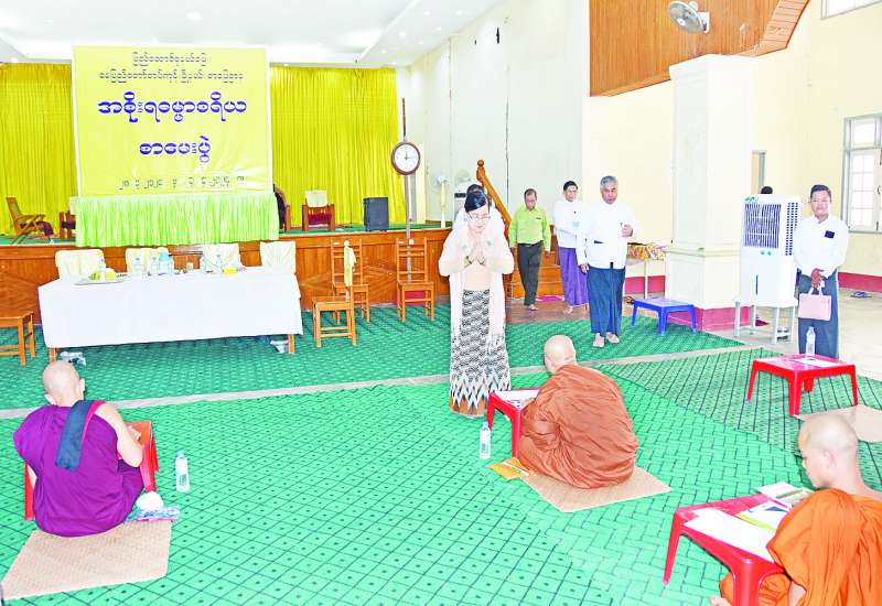 သာသနာရေးနှင့် ယဉ်ကျေးမှုဝန်ကြီးဌာန ဒုတိယဝန်ကြီး ဒေါ်နုမြဇံသည် တာဝန်ရှိသူများနှင့်အတူ ယနေ့နံနက်ပိုင်းတွင် ပြည်ထောင်စုနယ်မြေ နေပြည်တော်တပ်ကုန်းမြို့နယ် တပ်ကုန်းစာဖြေဌာန အောင်ဆန်းခန်းမ၌ အစိုးရဓမ္မာစရိယစာမေးပွဲ ဖြေဆိုလျက်ရှိသော သံဃာတော်များနှင့် သီလရှင်များကို သွားရောက်ဖူးမြော်ကြည်ညိုသည်။