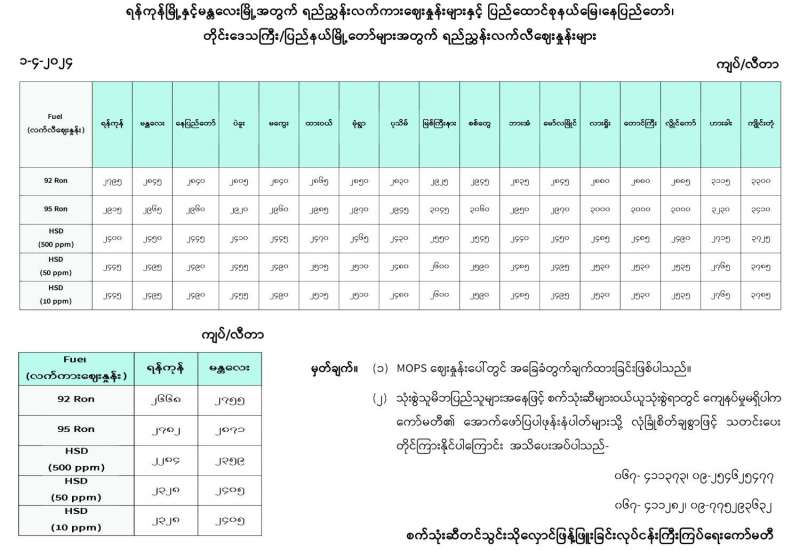 ရန်ကုန်မြို့နှင့် မန္တလေးမြို့အတွက် ရည်ညွှန်းလက်ကားဈေးနှုန်းများနှင့် ပြည်ထောင်စုနယ်မြေ နေပြည်တော်၊ တိုင်းဒေသကြီး/ ပြည်နယ် မြို့တော်များအတွက် ရည်ညွှန်းလက်လီဈေးနှုန်းများ