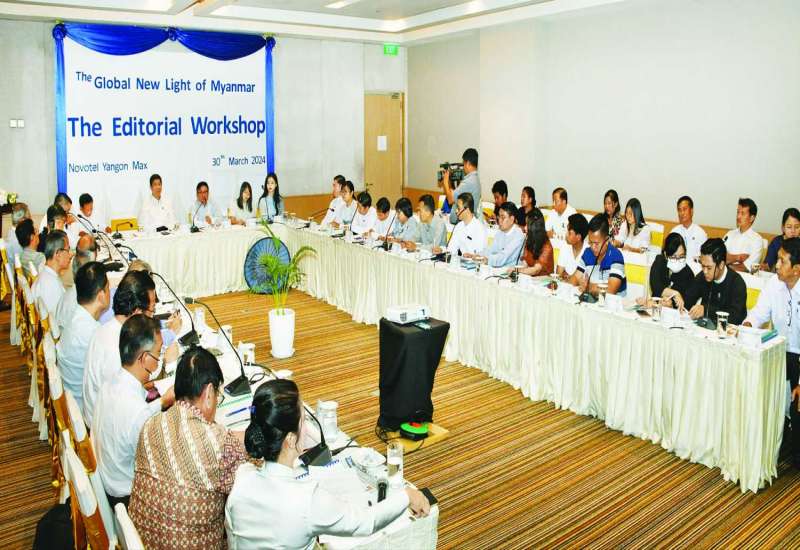 ပြန်ကြားရေးဝန်ကြီးဌာန သတင်းနှင့် စာနယ်ဇင်းလုပ်ငန်းနှင့် Global Direct Link Co.,Ltd တို့ အကျိုးတူဆောင်ရွက်လျက်ရှိသည့် The Global New Light of Myanmar သတင်းစာတွင် အသုံးအနှုန်းနှင့် နေ့စဉ်သုံးစွဲနေသော ဝေါဟာရများအား စံတစ်ခုအနေဖြင့် ပိုမိုစနစ်တကျရှိစေရန် သတင်းစာ စာတည်းဌာနမှ ဘာသာပြန်ဆိုခြင်းလုပ်ငန်းစဉ်ဆိုင်ရာ အလုပ်ရုံဆွေးနွေးပွဲကို ယနေ့ မွန်းလွဲပိုင်းက ရန်ကုန်မြို့ ကမာရွတ်မြို့နယ်ရှိ Novotel Yangon Max Hotel ၌ ကျင်းပသည်။