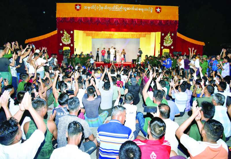 (၇၉) နှစ်မြောက်တပ်မတော်နေ့ စစ်ရေးပြ အခမ်းအနားတွင် ပါဝင်ချီတက် စစ်ရေးပြကြခဲ့ကြသည့် စစ်ကြောင်းများမှ အရာရှိ၊ စစ်သည်များအား ဂုဏ်ပြုဖျော်ဖြေပွဲကို ယနေ့ညပိုင်းတွင် နေပြည်တော်ရှိ စစ်ကြောရေးနှင့် တည်းခိုရေးစခန်း၌ ကျင်းပပြုလုပ်သည်။