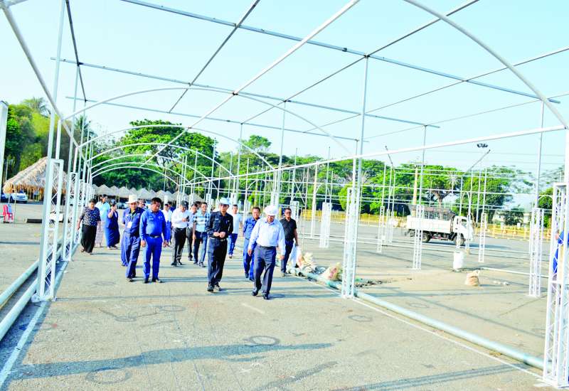 ရန်ကုန်တိုင်းဒေသကြီး စည်ပင်သာယာရေးဝန်ကြီး ရန်ကုန်မြို့တော် စည်ပင်သာယာရေးကော်မတီဥက္ကဋ္ဌ (မြို့တော်ဝန်) ဦးဗိုလ်ဌေးသည် ယနေ့နံနက်ပိုင်း တွင် ၁၃၈၅ ခုနှစ် မြန်မာ့ရိုးရာယဉ်ကျေးမှု မဟာသင်္ကြန်ရေသဘင်ပွဲတော်အတွက် မြို့တော်ခန်းမရှေ့ ဖျော်ဖြေရေးမဏ္ဍပ်နှင့် ရေကစားမဏ္ဍပ်တည်ဆောက်နေမှု လုပ်ငန်းများကို ကြည့်ရှုစစ်ဆေးပြီး မဏ္ဍပ်များကြံ့ခိုင် ကောင်းမွန်အောင်တည်ဆောက်ရေး၊ ယာဉ်သွားလာမှု အနှောင့်အယှက်မဖြစ်စေရေးနှင့် လုပ်ငန်းခွင်အန္တရာယ်ကင်းရှင်းရေးတို့ကို အလေးထားဆောင်ရွက်ရန်မှာကြားကာ လိုအပ်သည်များ ဖြည့်ဆည်းဆောင်ရွက်ပေးသည်။
